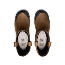 Protects like a work boot. fits like a sneaker. This waterproof pull-on style features a tough leather upper. energy-returning cushioning. and soft toe.