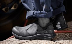 Designed with game-changing midsole cushioning. leather upper. and ESD outsole. this slip-on work sneaker adds protection for both you and your workpiece.